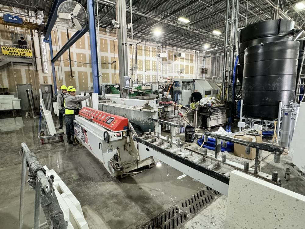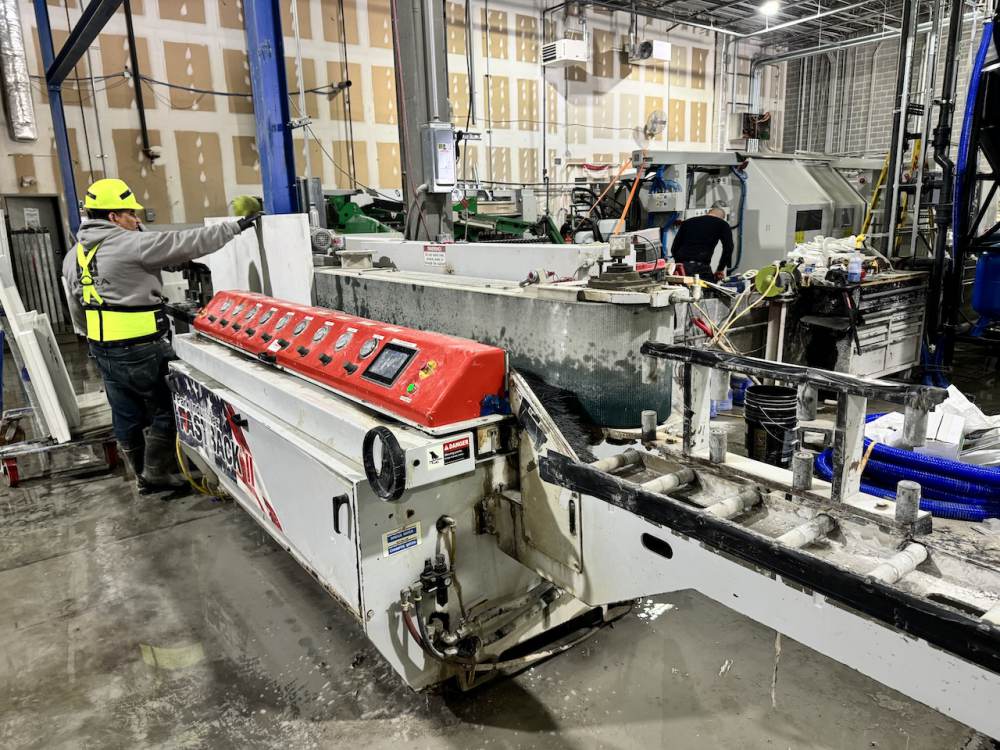 - Industries® exclusive Spindle Stagger on the FASTBACK® II Edge Polisher feature allows the operator to adjust the point at which the tool engages and disengages with the leading and trailing ends of the material. This ensures consistent and total polish end-to-end, essential for tightly nested slab layouts.