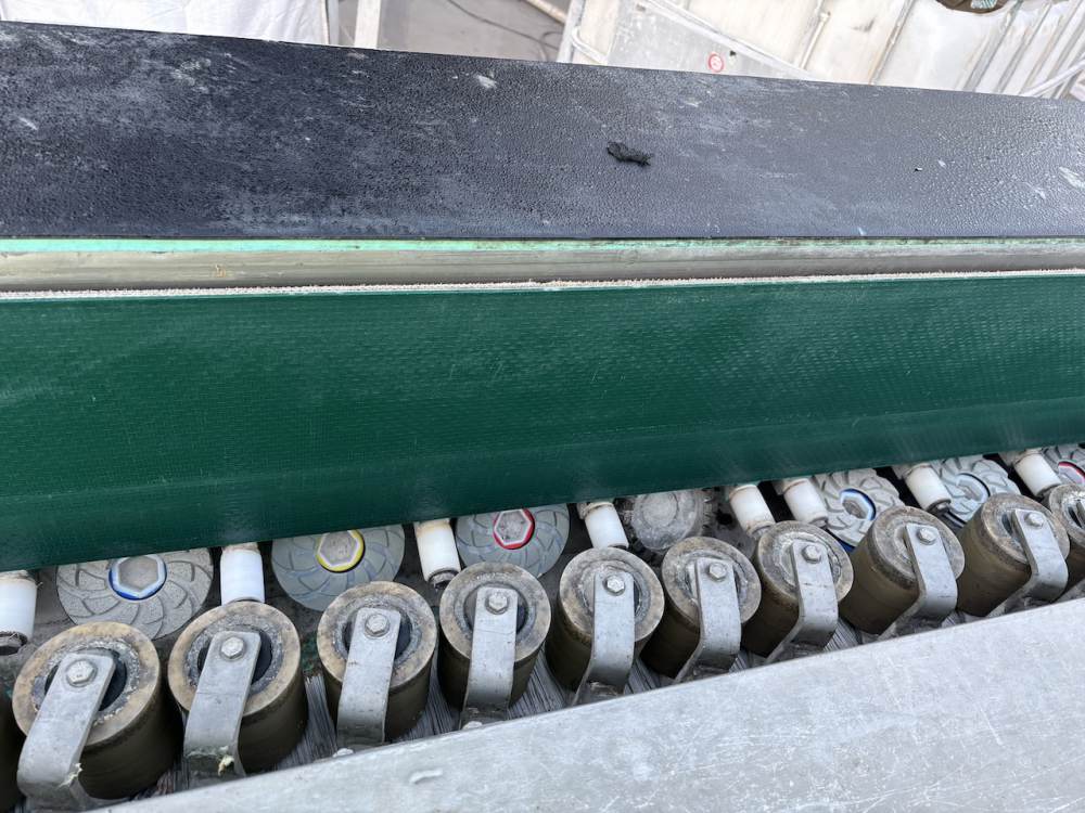 The LCV 711M is the industry standard for flat polish machinery. This machine is capable of polishing flat edges from 1-6 cm thick, on various types of materials with speeds ranging from 80-275 linear feet per hour. The LCV works on a continuous mode operation, meaning that all pieces are loaded one after the other, while moving past a series of polishing motors that result in a finished product which includes a top and bottom micro-bevel when needed.