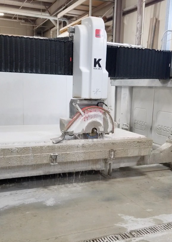 The Sasso K600 5 AXIS CNC Saw was made for cutting slabs of stone. With a powerful variable speed 20HP direct drive motor, this machine is capable of rapid and accurate cutting of countertops and sinks. The CAD/CAM software makes programing simple and easy for the operator.