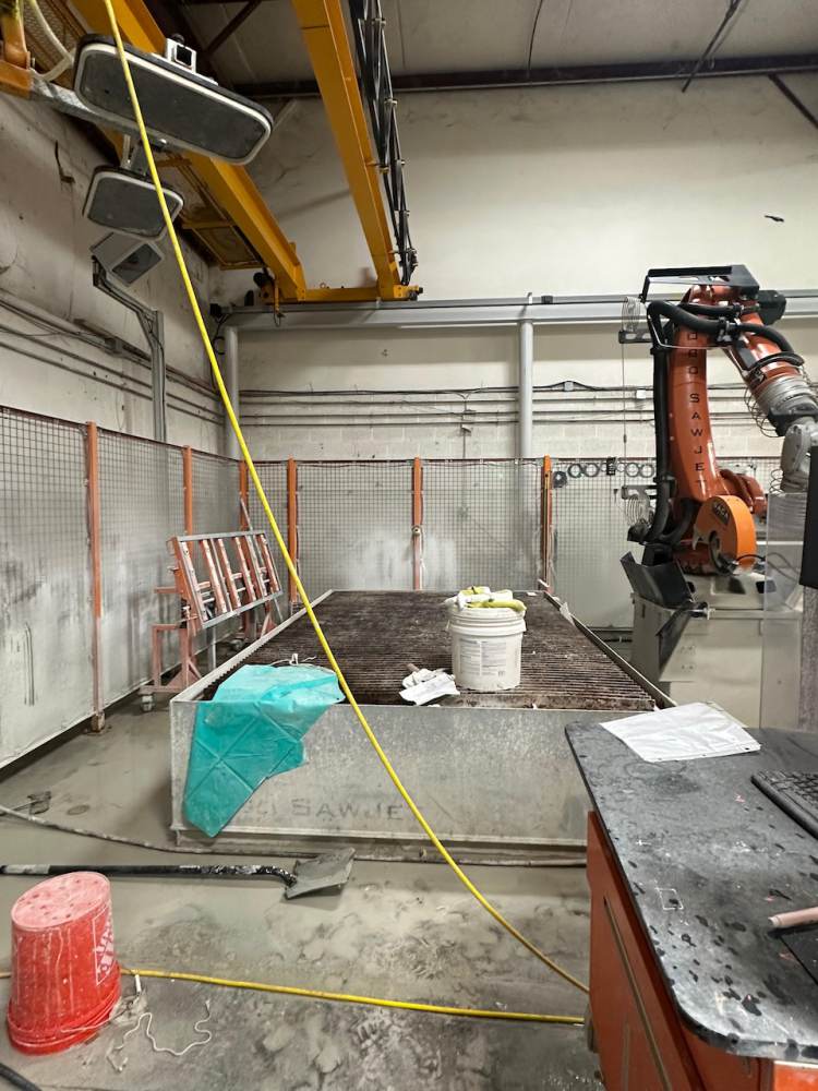 - Equipped with a robust 26HP saw motor and a 50HP H20 waterjet, the Robo SawJet is designed to process the most intricate countertop parts with unmatched precision. By leveraging the waterjet to shape sinks, arcs, radiuses, and other non-linear cuts reducing downstream labor drastically or increase CNC Router output by 30%.